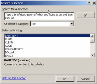 Use of Excel functions